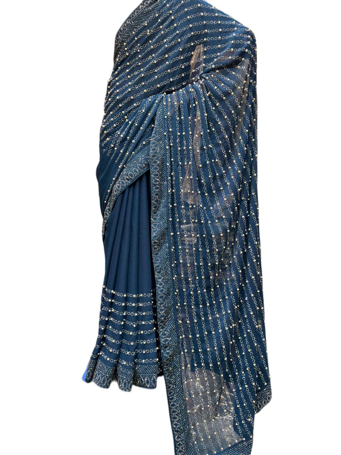 🧵 Product Details Fabric: Premium Soft Chiffon Shade: Elegant single-tone navy blue Embellishment: Hand-placed pulse...