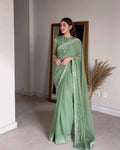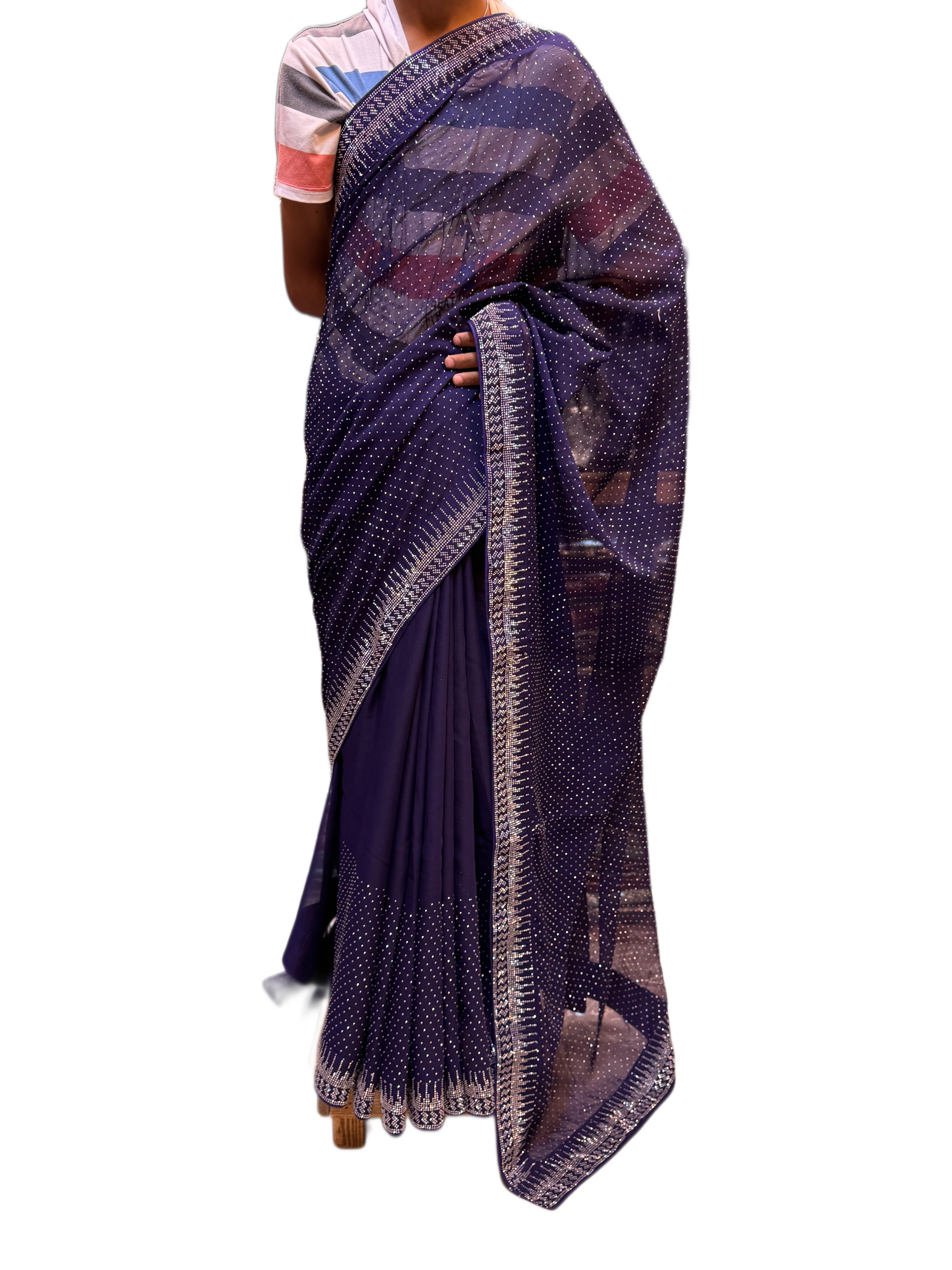 Pallu: Heavily detailed chiffon pallu with uniform embellishment
